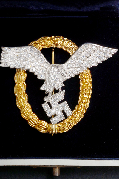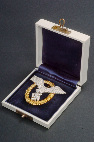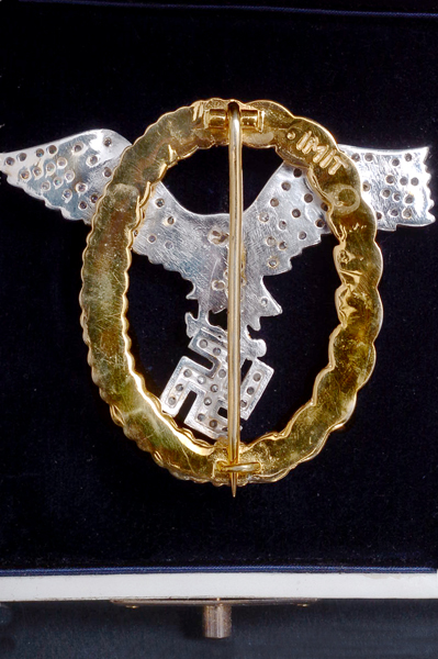 Amongst the rarest of the rare is the Luftwaffe Pilot/Observer Badge with Diamonds. Reichsmarschall Goering's obsession with his decorations and flamboyant uniforms appears to be mostly based on his penchant for elaborate representation and show. His persistent need to emphasize his status and power was also reflected in his practice of awarding personal decorations to friends and loyal staff.